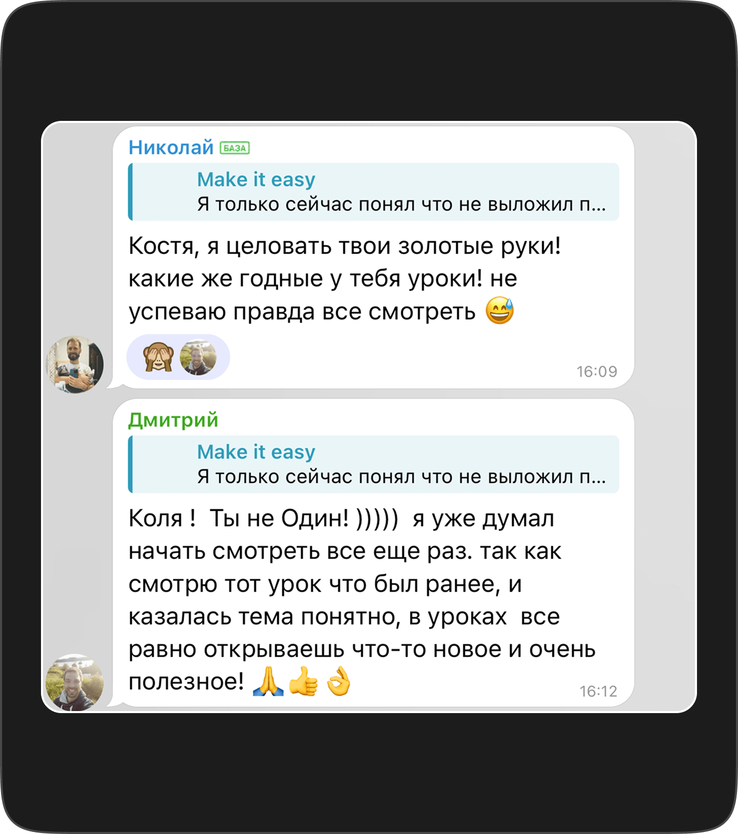 Рекомендуем выделять 4-6 часов в неделю для просмотра уроков и выполнения практических заданий. Можно заниматься в удобном для вас темпе, все материалы доступны в записи.