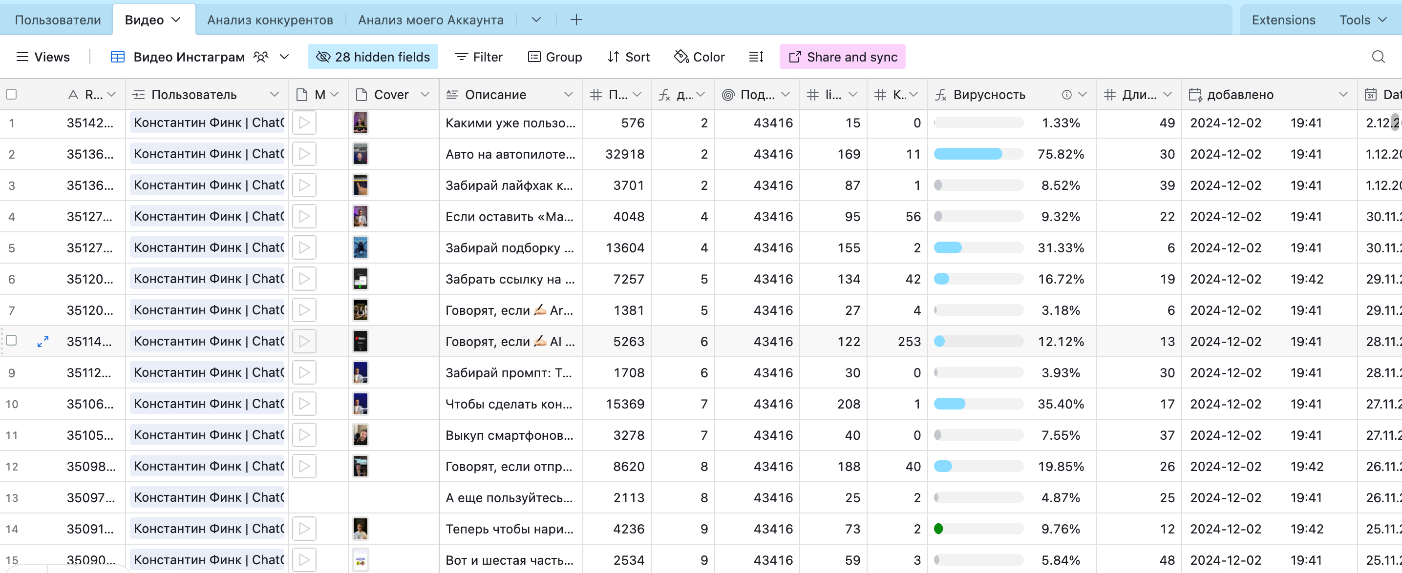 Благодаря анализу вирусных Reels или постов конкурентов, вы получаете проверенные идеи, которые уже работают. Это снижает риск провала и увеличивает вероятность успешного контента.