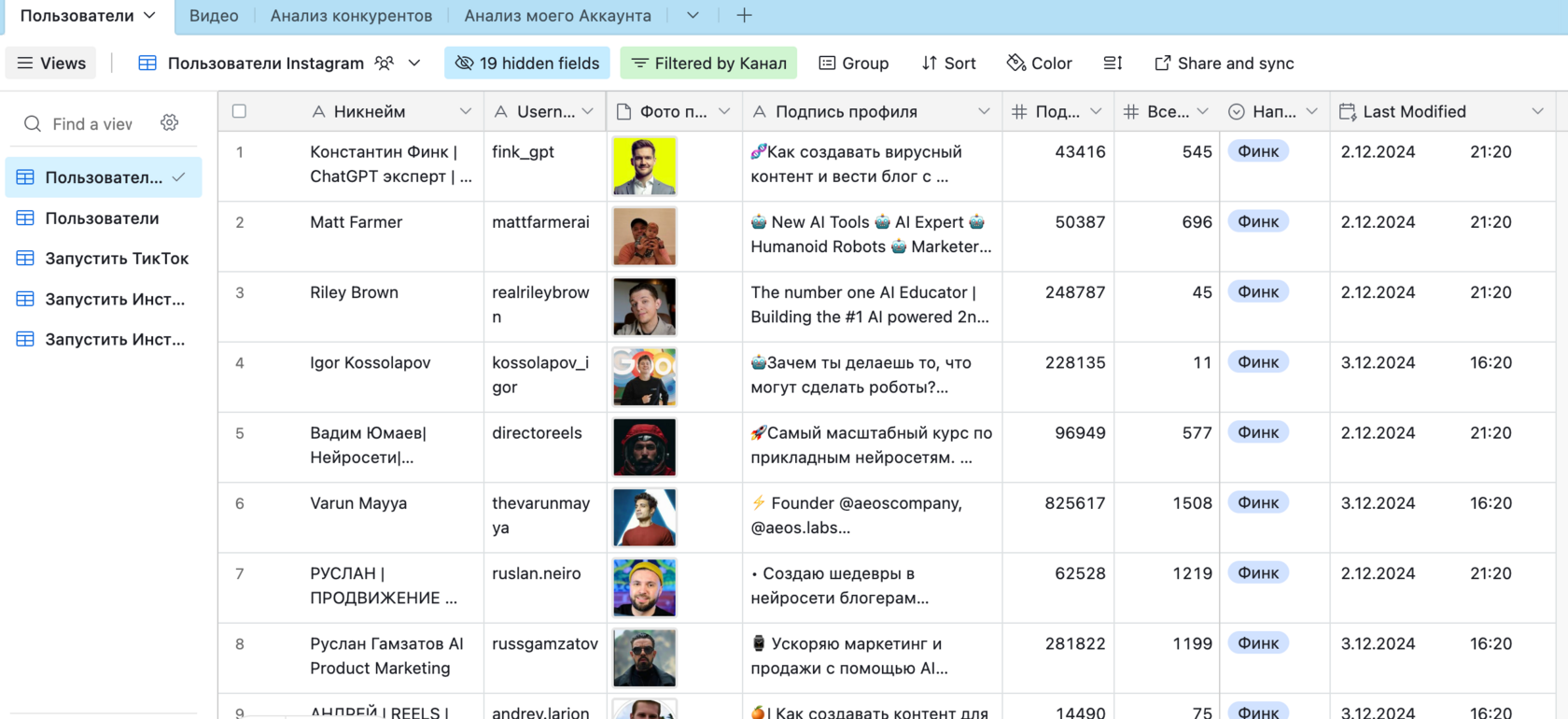 Автоматизация делается для каждого клиента индивидуально, мы создаем для вас все таблицы и автоматизации. Далее вам остается только добавить ссылки на аккаунты конкурентов